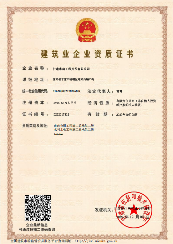 產(chǎn)投集團(tuán)水建公司成功獲批市政資質(zhì)許可