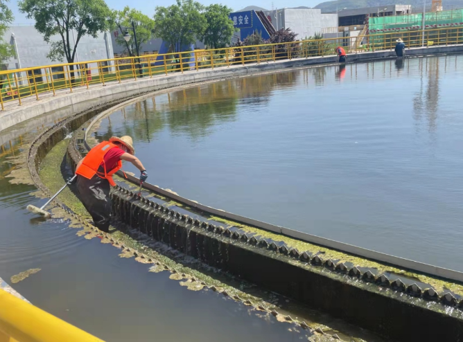 2022-05-09為全面提升城東污水處理廠出水各項指標,強化7S管理和文明創(chuàng)建要求,近日,城東污水處理公司組織職工清洗二沉池,全力保證出水穩(wěn)定達標排放。此次二沉池清洗工作,重點是對二沉池池壁、出水堰槽附著的藻類進行清理,洗刷出水三角堰蓄積污泥,打撈水面漂浮物,全面清洗